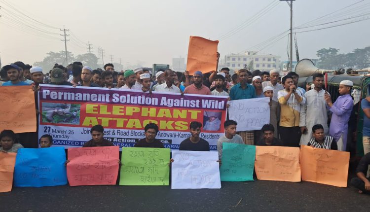 হাতি সরানোর দাবিতে কর্ণফুলীতে ফের সড়ক অবরোধ, ভোগান্তি