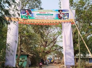 হামজার বিদেশি স্ত্রী অলিভিয়ার জন্যও বানানো হয়েছে তোরণ। ছবি: সংগৃহীত