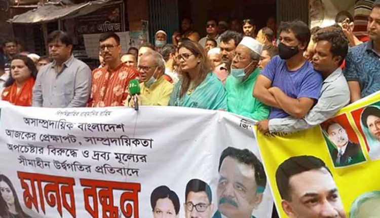 ‘অসম্প্রদায়িক বাংলাদেশ, আজকের প্রেক্ষাপট, সাম্প্রদায়িকতা অপচেষ্টার বিরুদ্ধে ও দ্রব্যমূল্যের সীমাহীন উর্ধ্বগতির প্রতিবাদ’ শীর্ষক মানববন্ধনে সভাপতিত্ব করেন উপজেলা বিএনপির সভাপতি অ্যাডভোকেট নিপুন রায় চৌধুরী।