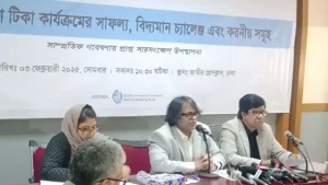 সোমবার (৩ ফেব্রুয়ারি) সকালে জাতীয় প্রেসক্লাবে এক সংবাদ সম্মেলনে এ তথ্য জানানো হয়। অনুষ্ঠানে মূলত স্বাস্থ্য সুরক্ষা ফাউন্ডেশন ও ইউনিসেফ বাংলাদেশের যৌথ পরিচালনায় ‘বাংলাদেশে টিকা কার্যক্রমের সাফল্য, বিদ্যমান চ্যালেঞ্জ এবং করণীয়’ শীর্ষক গবেষণার ফলাফল তুলে ধরা হয়।