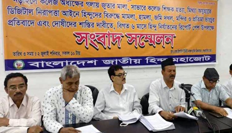 নড়াইলের কলেজ অধ্যক্ষের গলায় জুতার মালা, সাভারে কলেজ শিক্ষক হত্যা, মিথ্যা অজুহাতে ডিজিটাল নিরাপত্তা আইনে হিন্দুদের বিরুদ্ধে মামলা, হামলা, জমি দখল, মন্দির-প্রতিমা ভাঙচুরের প্রতিবাদে ও দোষীদের শাস্তির দাবিতে এ সংবাদ সম্মেলনের আয়োজন করা হয়। এ সময় গত ছয় মাসে হিন্দু নির্যাতনের রিপোর্ট পেশ করেন মহাজোটের নেতারা।