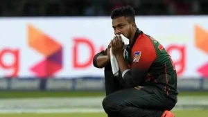 ২০২৪ সালের নির্বাচনে আওয়ামী লীগের সংসদ সদস্য হওয়া এই অলরাউন্ডার রাজনৈতিক পটপরিবর্তনের পর দেশে আসতে পারছেন না। নভেম্বরে দক্ষিণ আফ্রিকার বিপক্ষে ঘরের মাঠে টেস্ট খেলে বিদায় বলতে চাইলেও সেটি পারেননি। সুযোগ পাননি চ্যাম্পিয়নস ট্রফির দলে।