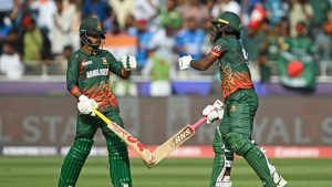 জাকের ৬৮ রান করে ফেরায় ভাঙে সেই রেকর্ড জুটি। এরপর উইকেটে এসে দুর্দান্ত এক ক্যামিওতে স্বপ্ন দেখান রিশাদ হোসেন। তবে ১২ বলে ১৮ রানের বেশি করতে পারেননি তিনি। রিশাদের পর তানজিম সাকিবও দ্রুত ফিরলে আবারো অলআউটের শঙ্কায় পড়ে বাংলাদেশ।