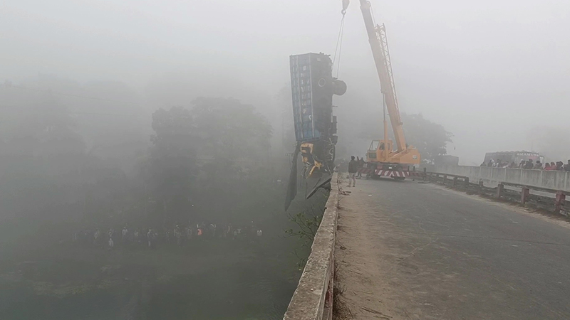 ঝিনাইদহে ব্রিজের রেলিং ভেঙে ট্রাক নদীতে, নিহত ২