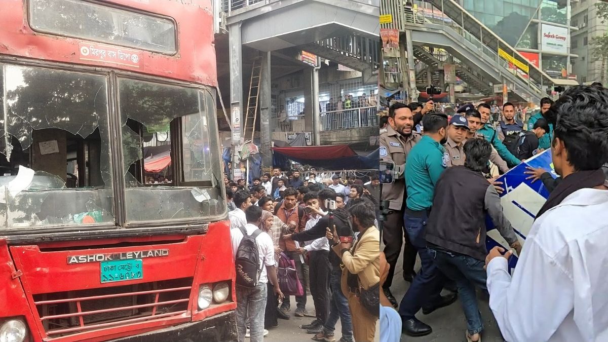 সাকিবুল হত্যার বিচার চেয়ে ফার্মগেট অবরোধ, বাস ভাঙচুর