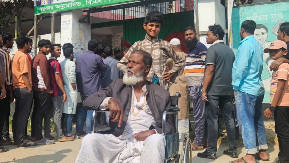 হুইলচেয়ারে এসে ভোট দিলেন ৭০ বছরের বৃদ্ধ