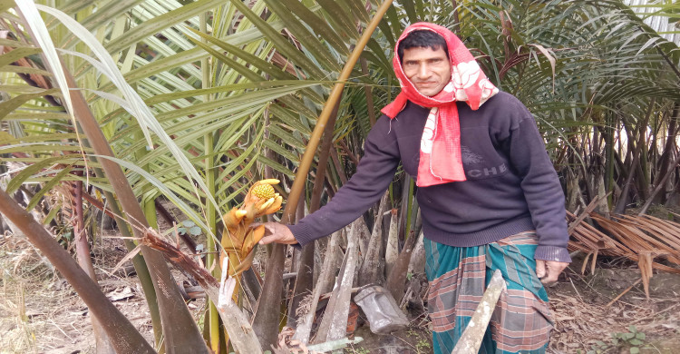 কলাপাড়ায় গোলগাছের রসে তৈরি হচ্ছে অন্যরকম স্বাদের গুড়