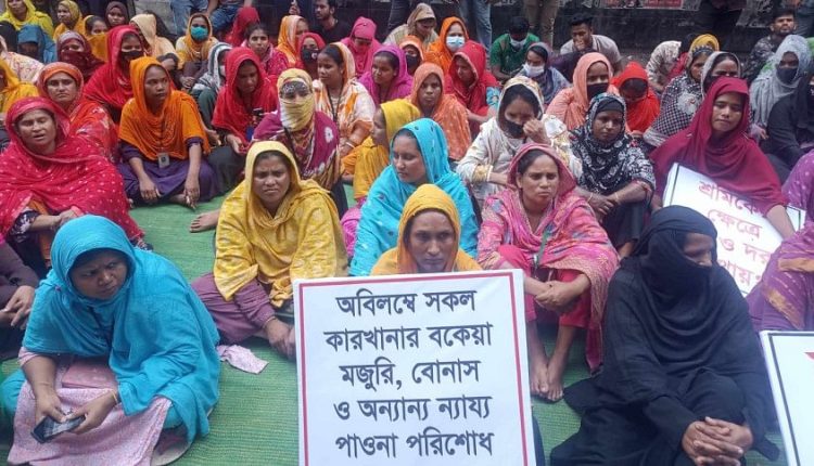 বেতন-বোনাসের দাবিতে শ্রম ভবনের সামনে শ্রমিকদের বিক্ষোভ