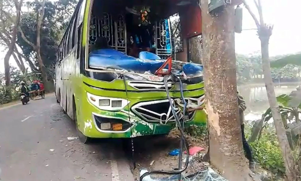 যাত্রীবাহী বাস নিয়ন্ত্রণ হারিয়ে গাছের সঙ্গে ধাক্কা, আহত ২০