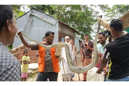 সুন্দরবন থেকে লোকালয়ে ১২ ফুট লম্বা অজগর
