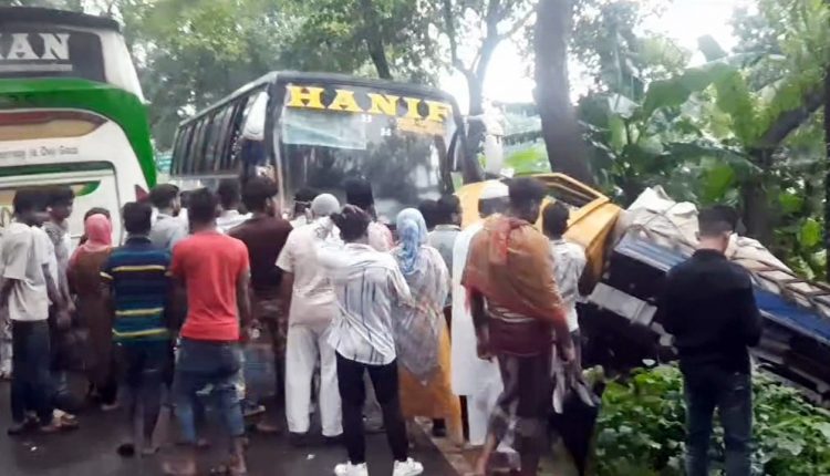 ঢাকা-বরিশাল মহাসড়কে বাস-ট্রাকের ত্রিমুখী সংঘর্ষ