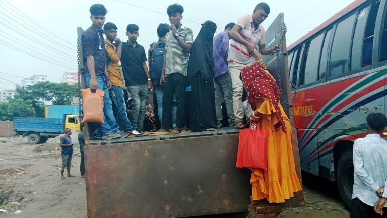 ট্রাকে বাড়ি যাচ্ছেন পোশাক শ্রমিকরা