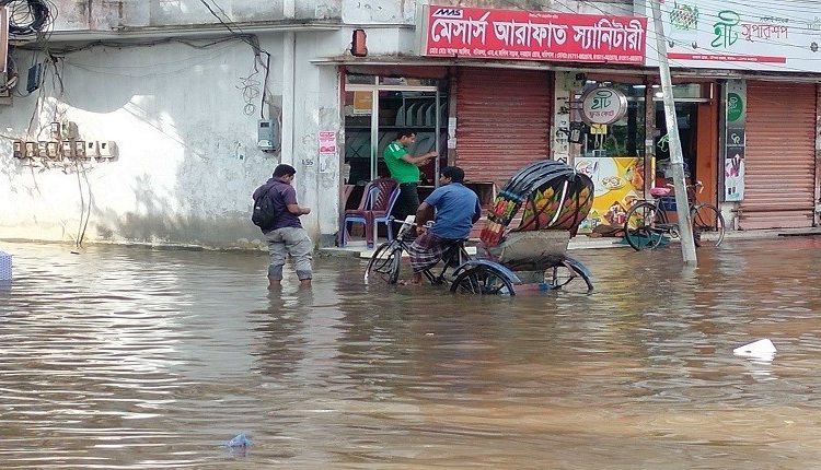 টানা বৃষ্টিতে পানির নিচে বরিশালের বিভিন্ন সড়ক