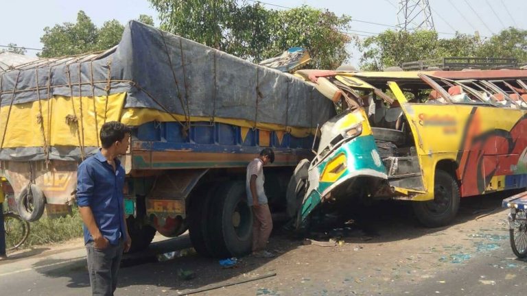 ট্রাক ও বাসের মাঝে চাপা পড়ে পুলিশ সদস্য নিহত