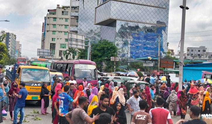 কুড়িলে পোশাক শ্রমিকদের সড়ক অবরোধ, যান চলাচল বন্ধ