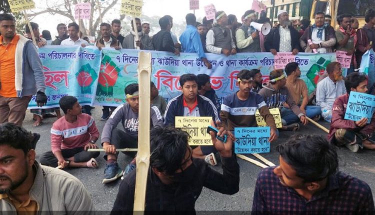 থানার দাবিতে কুষ্টিয়া-ঝিনাইদহ মহাসড়ক অবরোধ