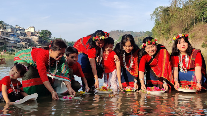 নদীতে ফুল ভাসিয়ে পাহাড়ে বর্ষবরণ উৎসব শুরু