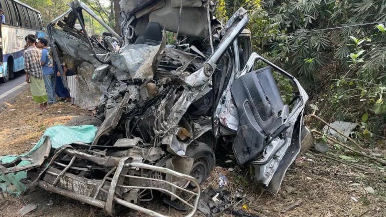 দুই কাভার্ড ভ্যানের মাঝে চাপা পড়ে অটোরিকশার ৫ যাত্রী নিহত