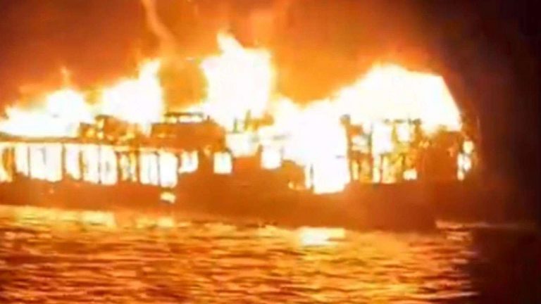 টাঙ্গুয়ার হাওরে পর্যটকবাহী নৌকায় ভয়াবহ আগুন