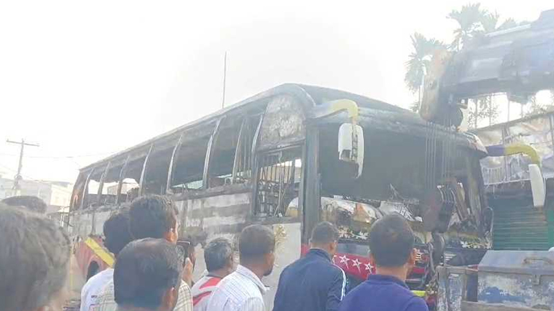 ময়মনসিংহে বাসে দুর্বৃত্তদের আগুন, পুড়ে মারা গেলেন চালক
