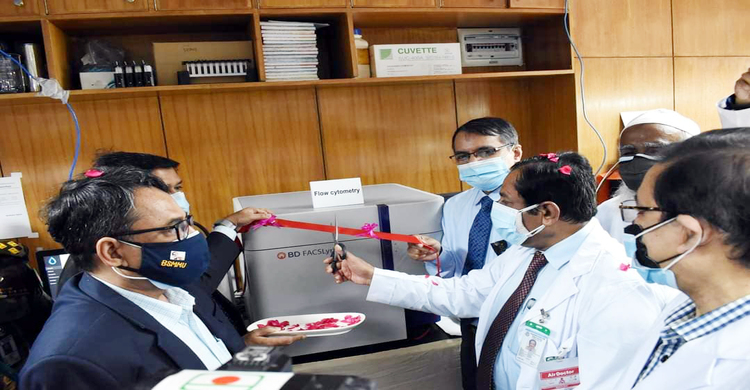 বিএসএমএমইউতে করোনার অ্যান্টিবডি টেস্টের মেশিন ও কর্নারের উদ্...