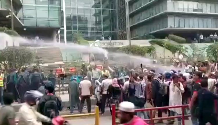 গ্রামীণফোনের চাকরিচ্যুতদের জলকামানে ছত্রভঙ্গ করল পুলিশ