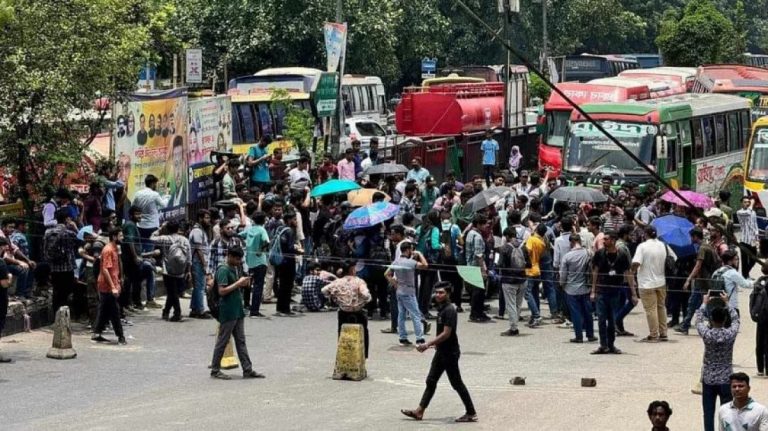 নতুনবাজারে ইউআইইউ শিক্ষার্থীদের ব্লকেড, যান চলাচল বন্ধ