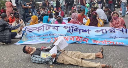 সচিবালয়ে যেতে বাধা, সড়ক অবরোধ চাকরিচ্যুত পুলিশ সদস্যদের