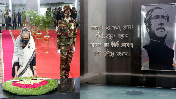 বঙ্গবন্ধুর প্রতিকৃতিতে প্রধানমন্ত্রীর শ্রদ্ধা