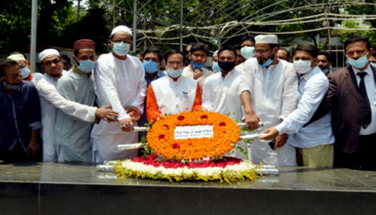 বঙ্গবন্ধুর প্রতিকৃতিতে হাজী সেলিম, পুত্র ইরফানের শ্রদ্ধা