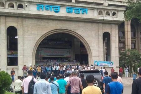 নগর ভবনের সামনে ফের অবস্থান নিলেন ইশরাকের সমর্থকরা