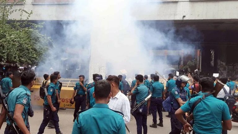 হঠাৎ উত্তপ্ত প্রেসক্লাব, পুলিশের সাউন্ড গ্রেনেড নিক্ষেপ