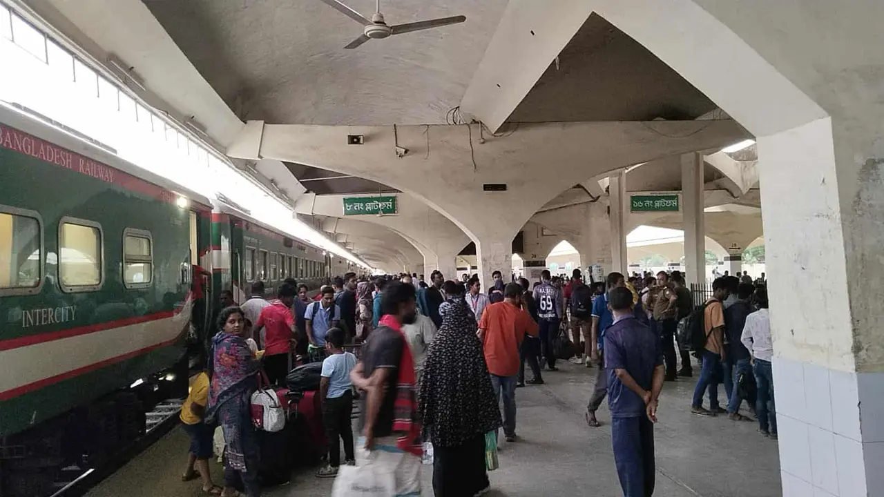 কমলাপুরে ঢাকামুখী যাত্রীদের ভিড়