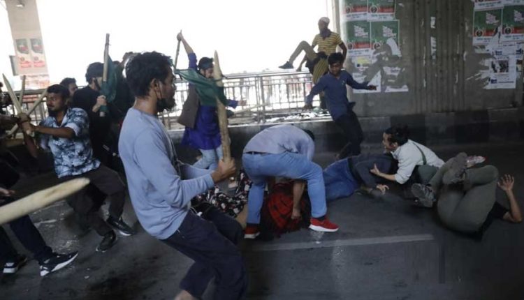 ‘সংক্ষুব্ধ ছাত্র-জনতার’ মিছিলে পুলিশের ধাওয়া, লাঠিপেটা