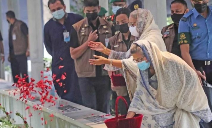 নিজ পরিবারের শহীদদের কবর জিয়ারত করলেন প্রধানমন্ত্রী