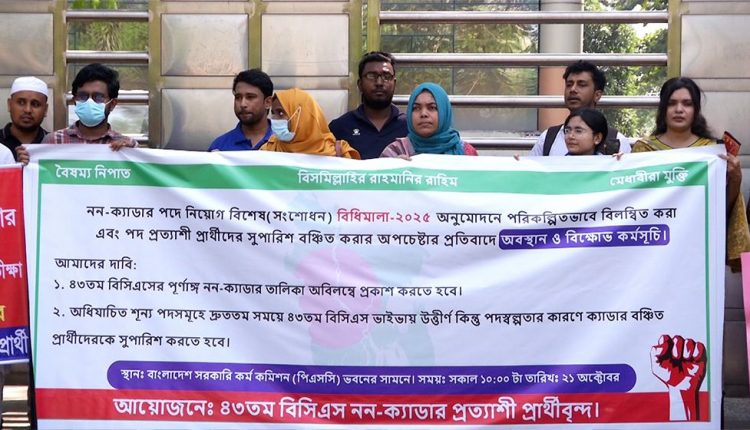 বিপিএসসির সামনে ৪৩তম বিসিএস নন ক্যাডারদের অবস্থান ও বিক্ষোভ