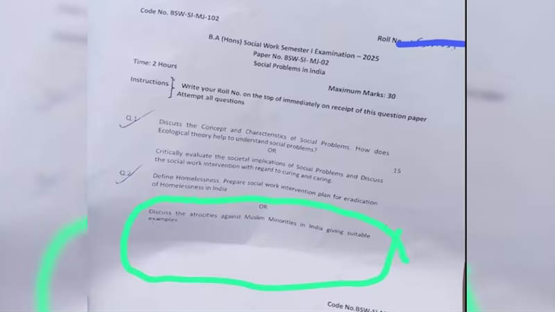 প্রশ্নপত্রে ‘মুসলিমদের ওপর নিপীড়ন’ নিয়ে প্রশ্ন, ভারতে অধ্যাপ...