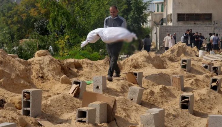 গাজায় গণকবরে প্রিয়জনদের খুঁজে পাওয়ার চেষ্টা করছে ফিলিস্তিনি...