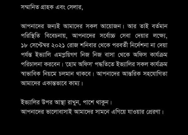 ইভ্যালির অফিস বন্ধ রাখার ঘোষণা