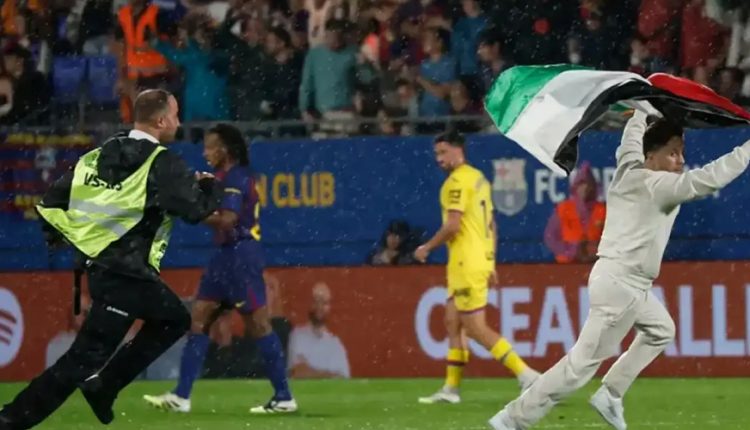 বার্সেলোনার ম্যাচে ফিলিস্তিনের পতাকা হাতে দর্শকের অনুপ্রবেশ