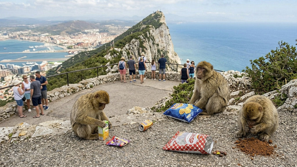 জিব্রাল্টারে আটটি দলে প্রায় ২৩০টি বানর বাস করে। স্থানীয় কর্তৃপক্ষ এদের প্রতিদিন ফল, সবজি ও বীজ খেতে দিলেও পর্যটকরা নিয়ম ভেঙে চিপস, চকলেট, এমঅ্যান্ডএমস ও আইসক্রিমের মতো খাবার দেন।