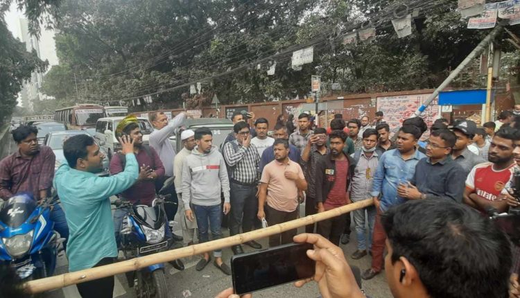 বাঁশ দিয়ে সড়ক আটকে দিলেন তিতুমীরের শিক্ষার্থীরা