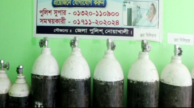 নোয়াখালীতে করোনা রোগীদের আশা পুলিশের মানবিক অক্সিজেন ব্যাংক