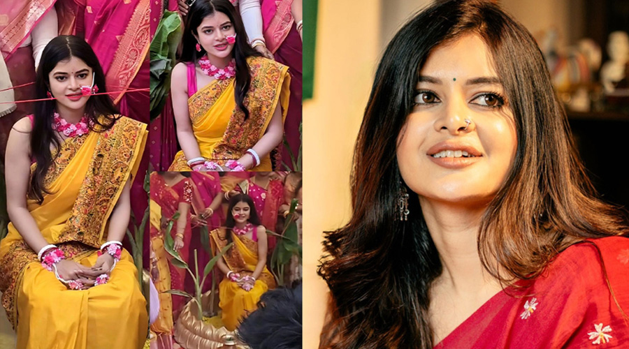 দ্বিতীয় বিয়ের হলুদে জমিয়ে নাচলেন অভিনেত্রী মধুমিতা সরকার