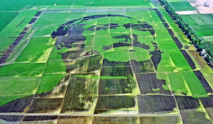 বালেন্দা গ্রামে ১২০ বিঘা জমির ক্যানভাসে বঙ্গবন্ধুর প্রতিকৃতি
