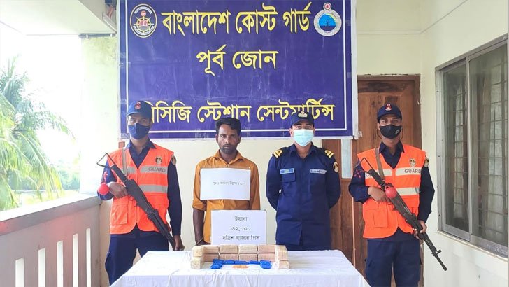 সেন্টমার্টিনে ৩২ হাজার পিস ইয়াবাসহ আটক ১
