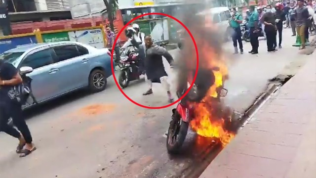 পুলিশের ওপর বিরক্ত হয়ে নিজের বাইকেই আগুন ধরিয়ে দিলেন পাঠাও...